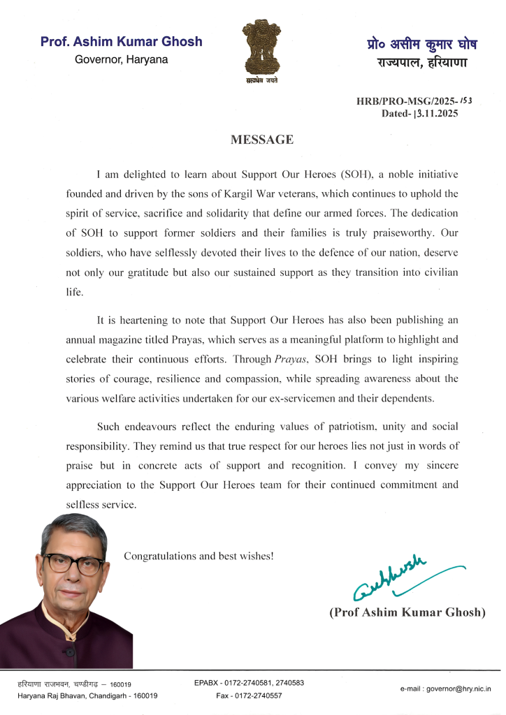 “The noble vision of “Support Our Heroes”, that “no soldier or their family should ever feel alone”, is truly commendable. Such endeavours not only exemplify the highest form of national service but also serve as a source of inspiration for the youth of our nation.